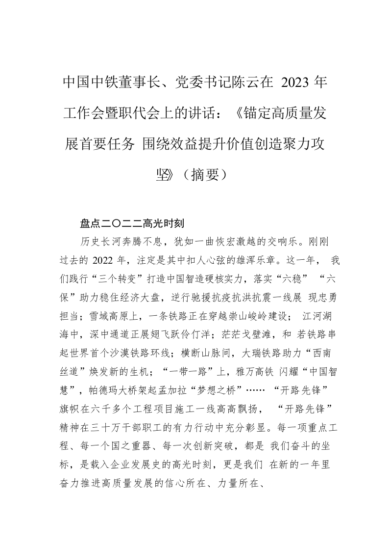 / 中国中铁董事长、党委书记陈云在2023年工作会暨职代会上的讲话