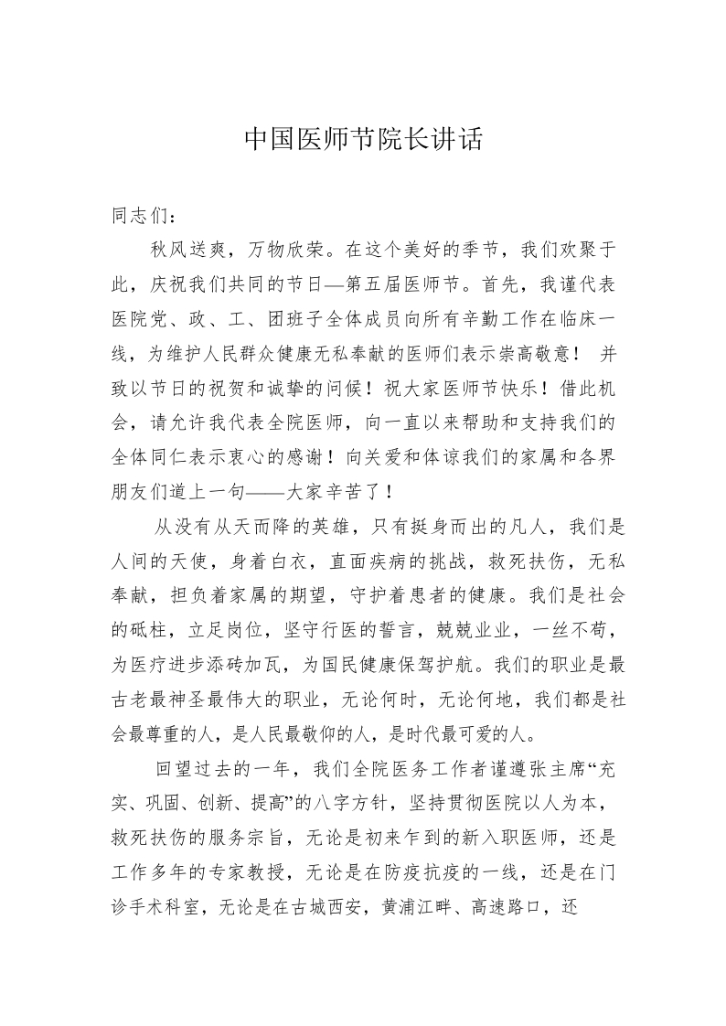 中国医师节院长讲话(20220819)