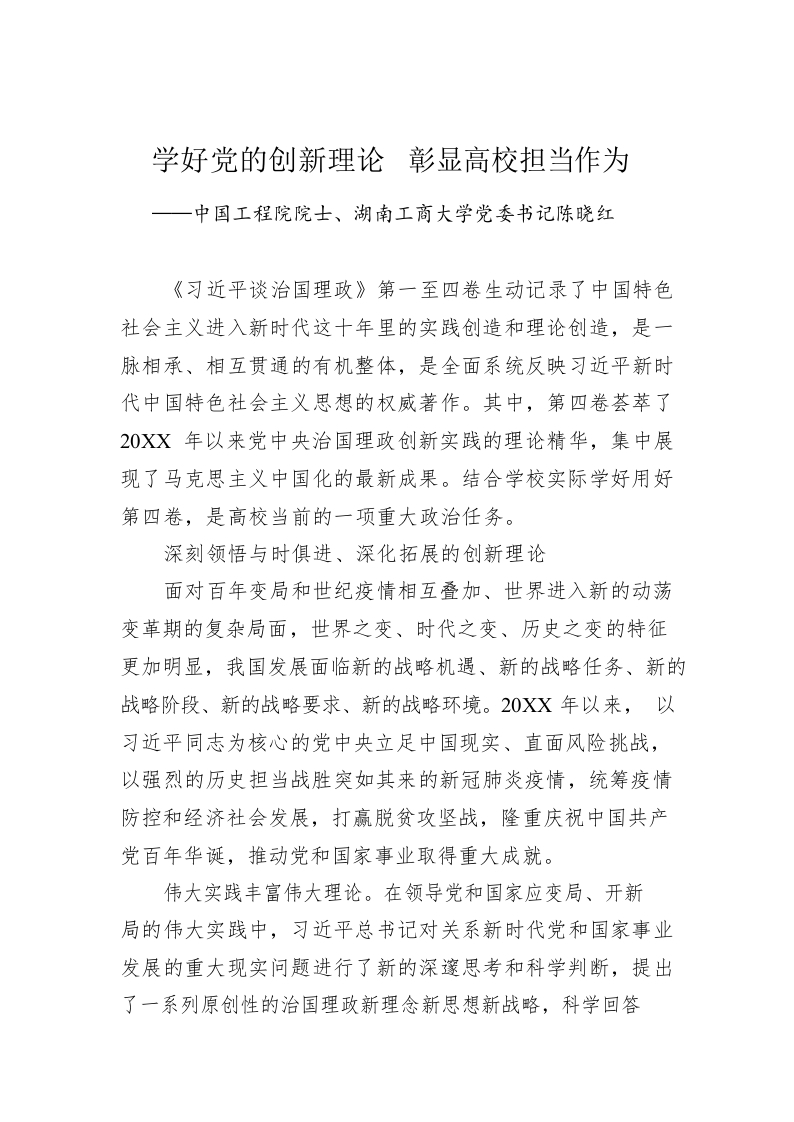 中国工程院院士、湖南工商大学党委书记陈晓红:读懂用好《习近平谈治国理政》第四卷(20220909)