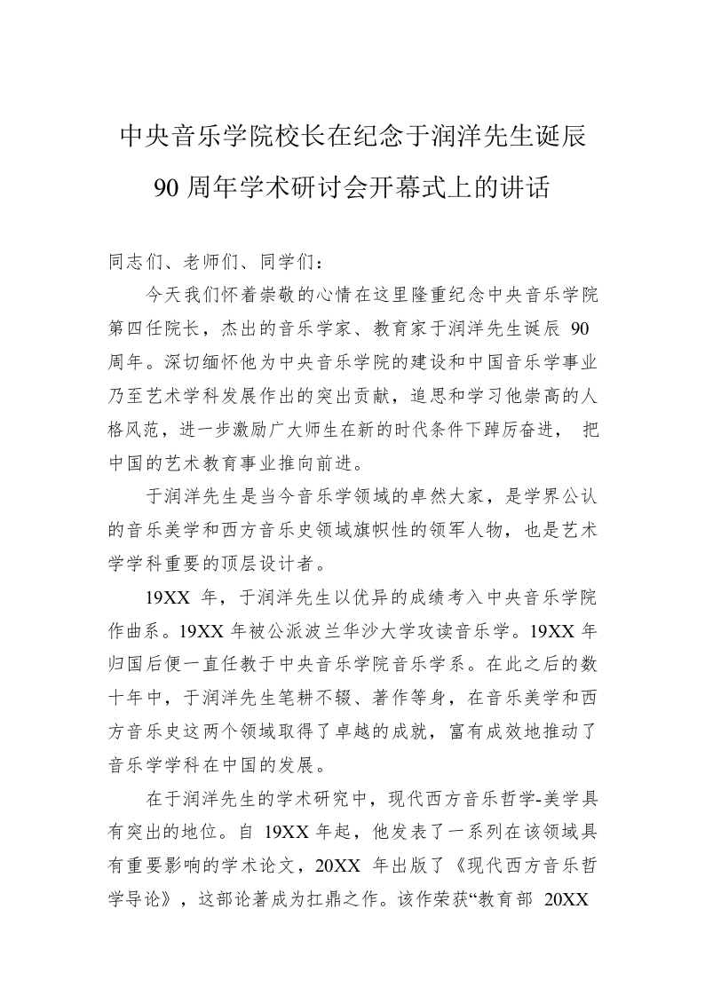 / 中央音乐学院校长在纪念于润洋先生诞辰90周年学术研讨会开幕式上的讲话(20221204)