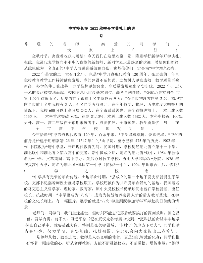 中学校长在新学年开学典礼暨庆祝教师节表彰大会上的讲话