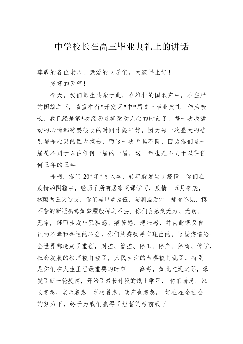 中学校长在高三毕业典礼上的讲话