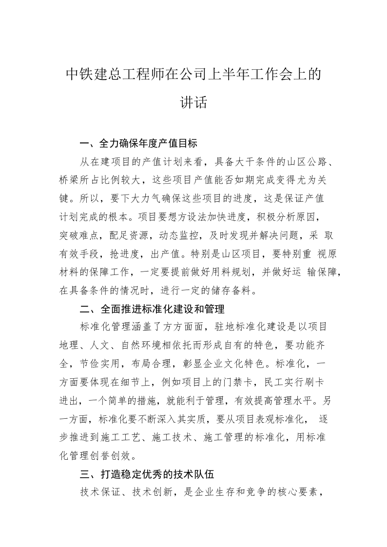 / 中铁建总工程师在公司上半年工作会上的讲话
