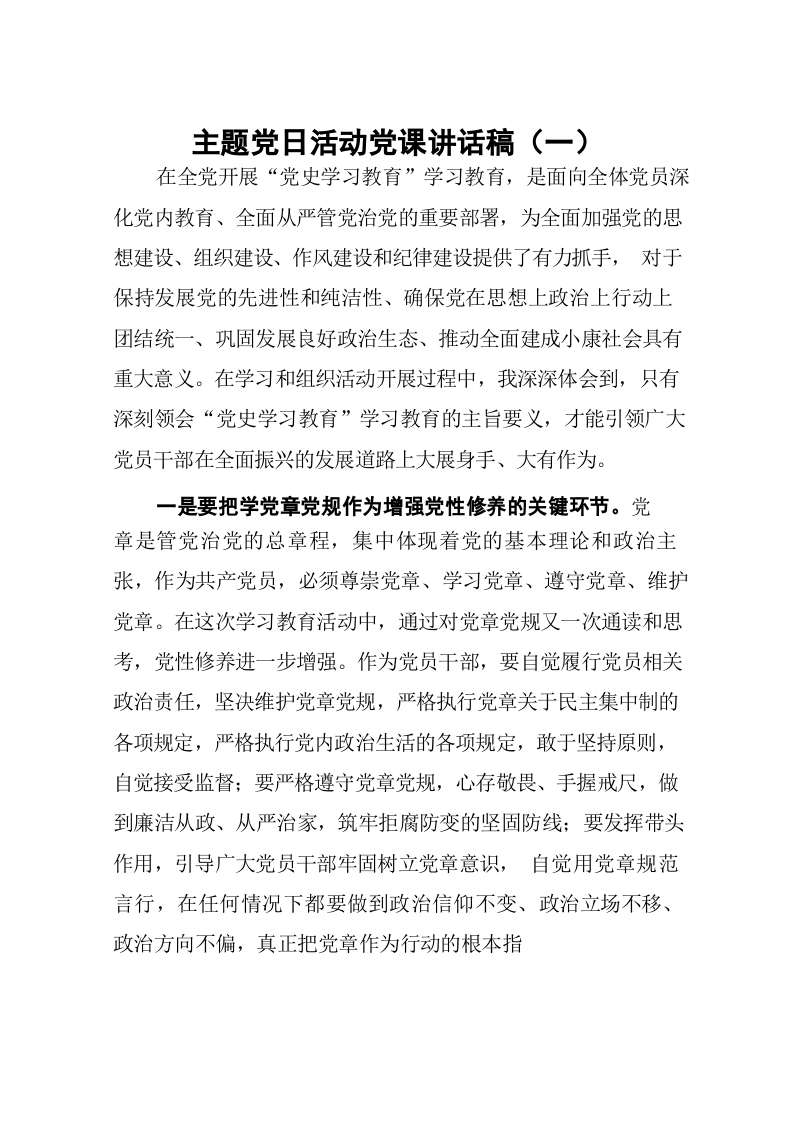 主题党日活动党课讲话稿