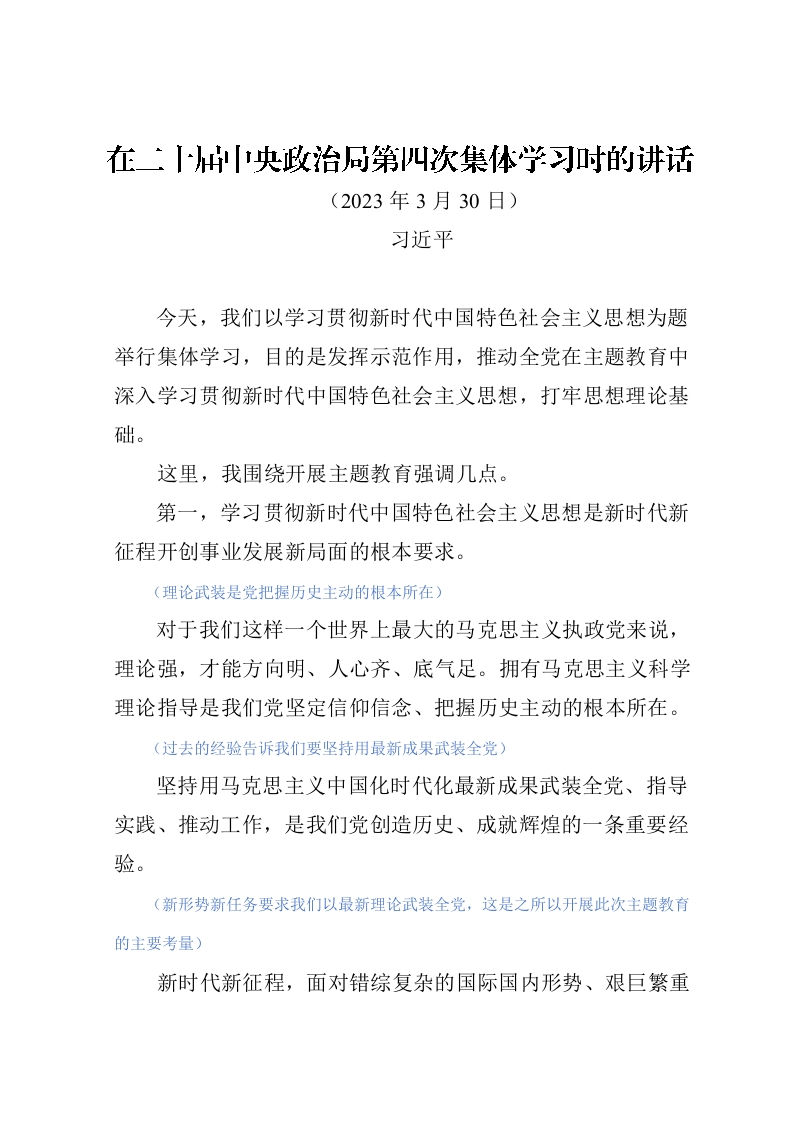 / 主题教育∣顶层文件:11习近平在中央政治局第四次集体学习会上的讲话(全文—给全党打样)