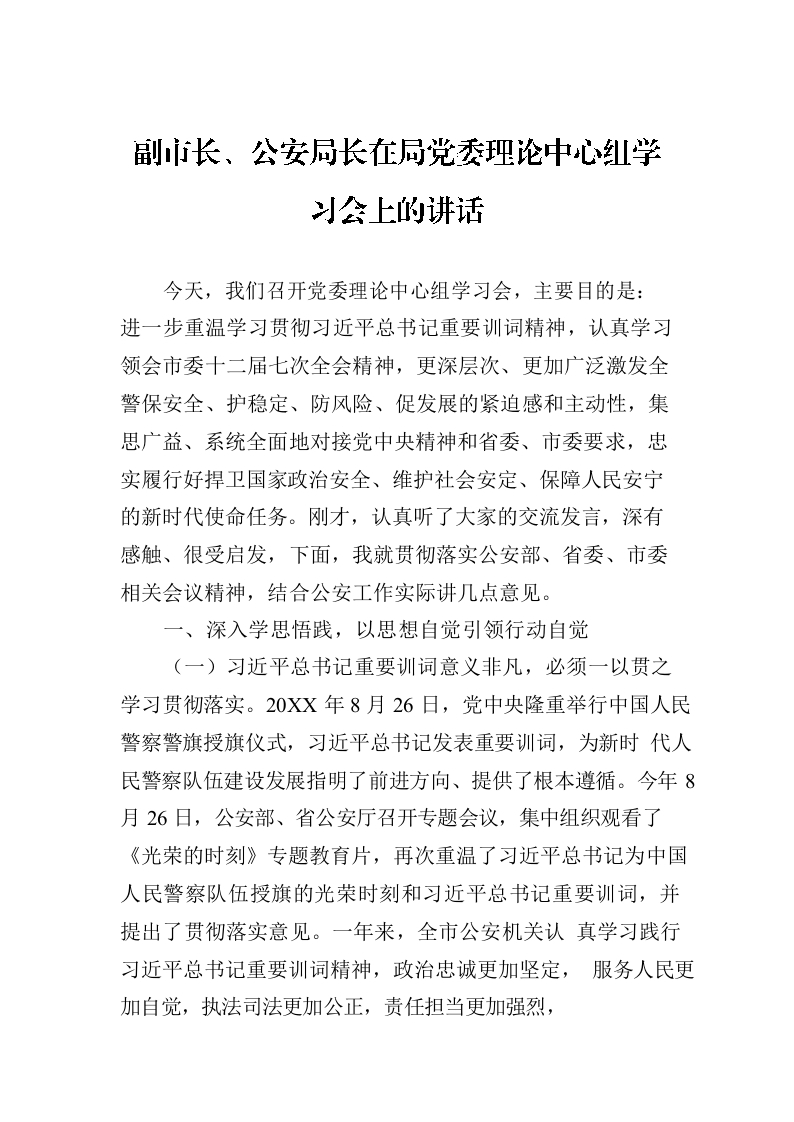 / 副市长、公安局长在局党委理论中心组学习会上的讲话