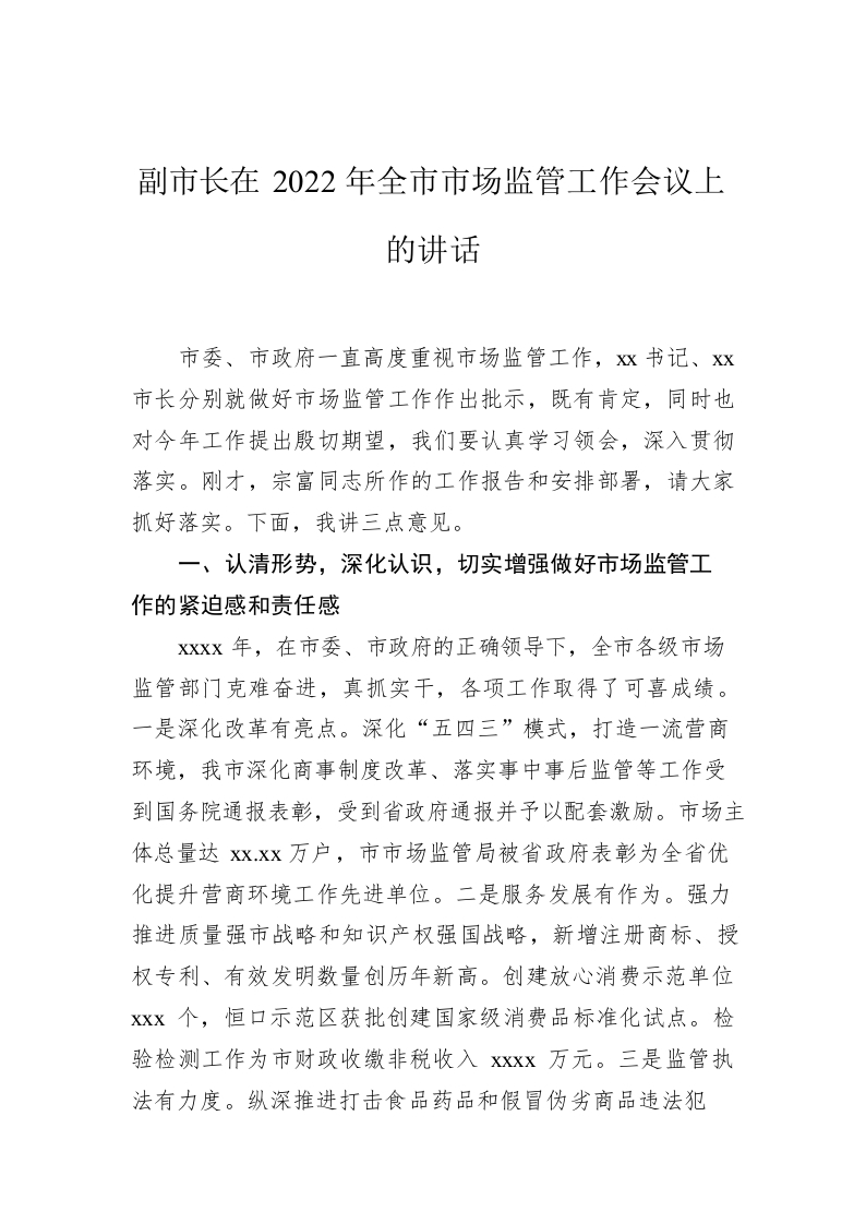 / 副市长在2022年全市市场监管工作会议上的讲话