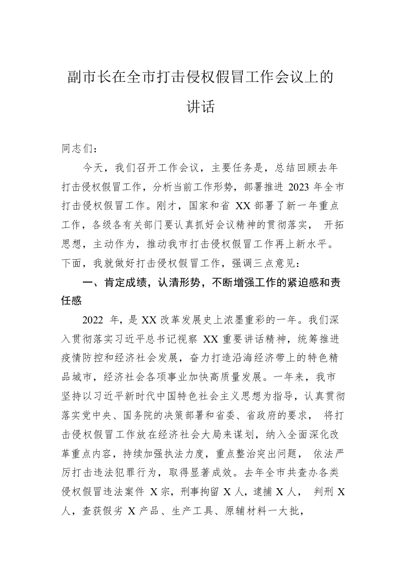 / 副市长在全市打击侵权假冒工作会议上的讲话