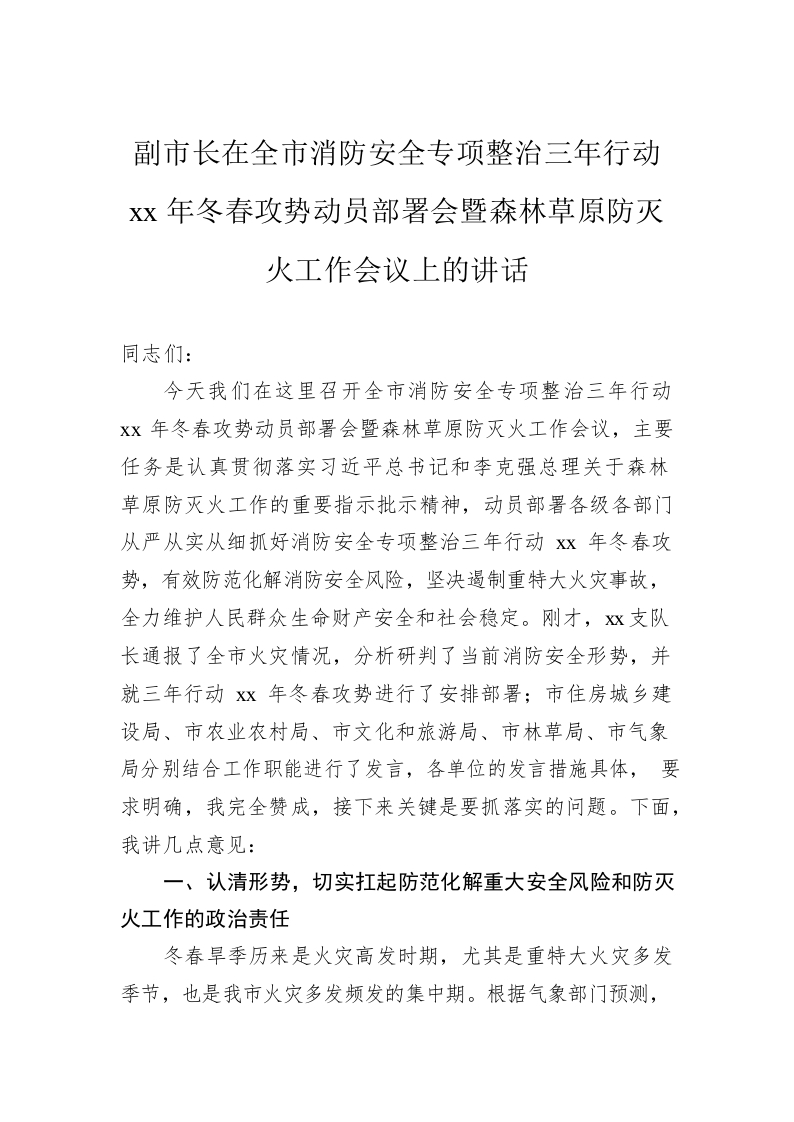 / 副市长在全市消防安全专项整治三年行动xx年冬春攻势动员部署会暨森林草原防灭火工作会议上的讲话