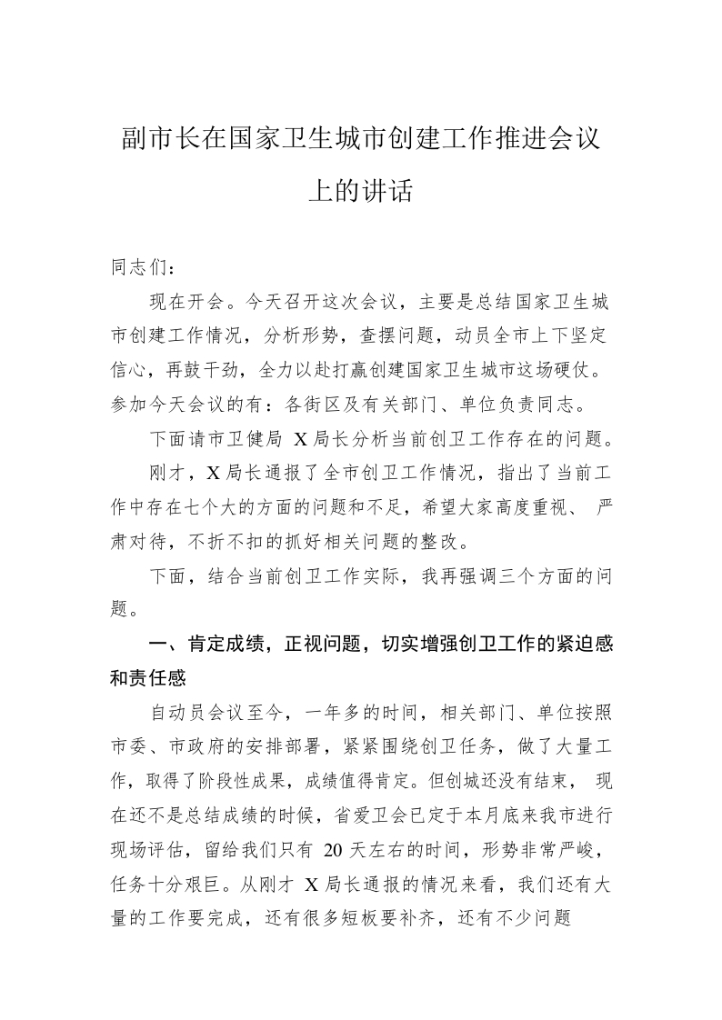 / 副市长在国家卫生城市创建工作推进会议上的讲话