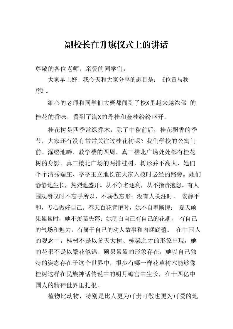 / 副校长在升旗仪式上的讲话