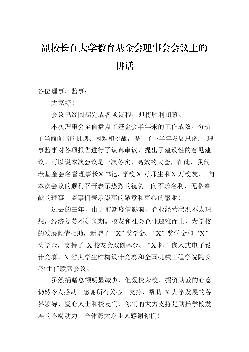 / 副校长在大学教育基金会理事会会议上的讲话