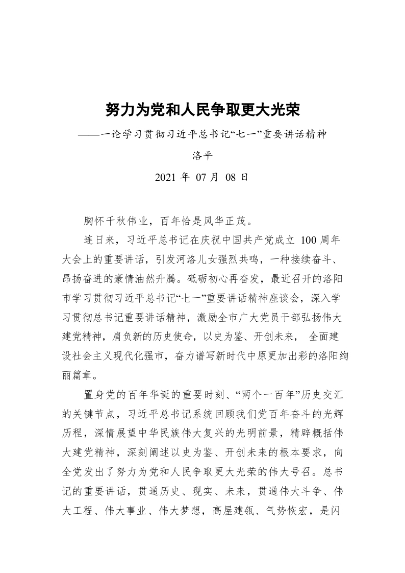 / 努力为党和人民争取更大光荣——一论学习贯彻习近平总书记“七一”重要讲话精神