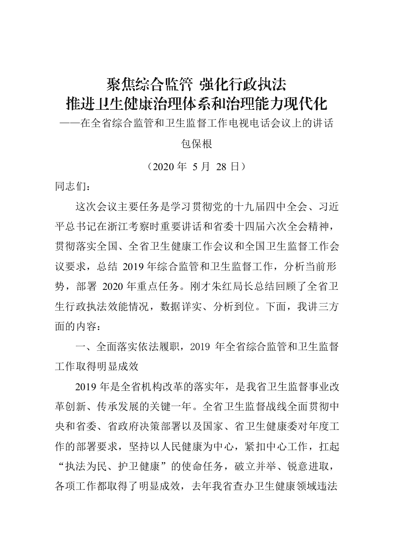 / 包保根在全省综合监管和卫生监督工作电视电话会议上的讲话