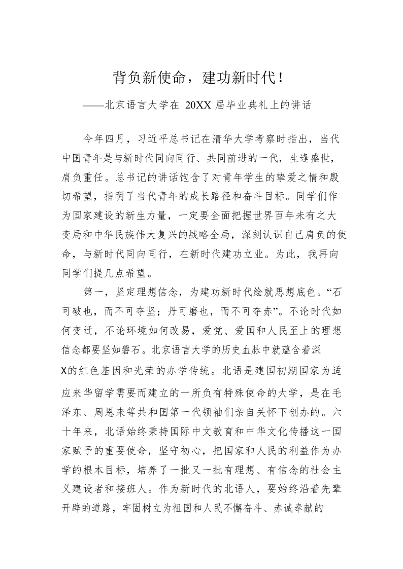 / 北京语言大学在20XX届毕业典礼上的讲话