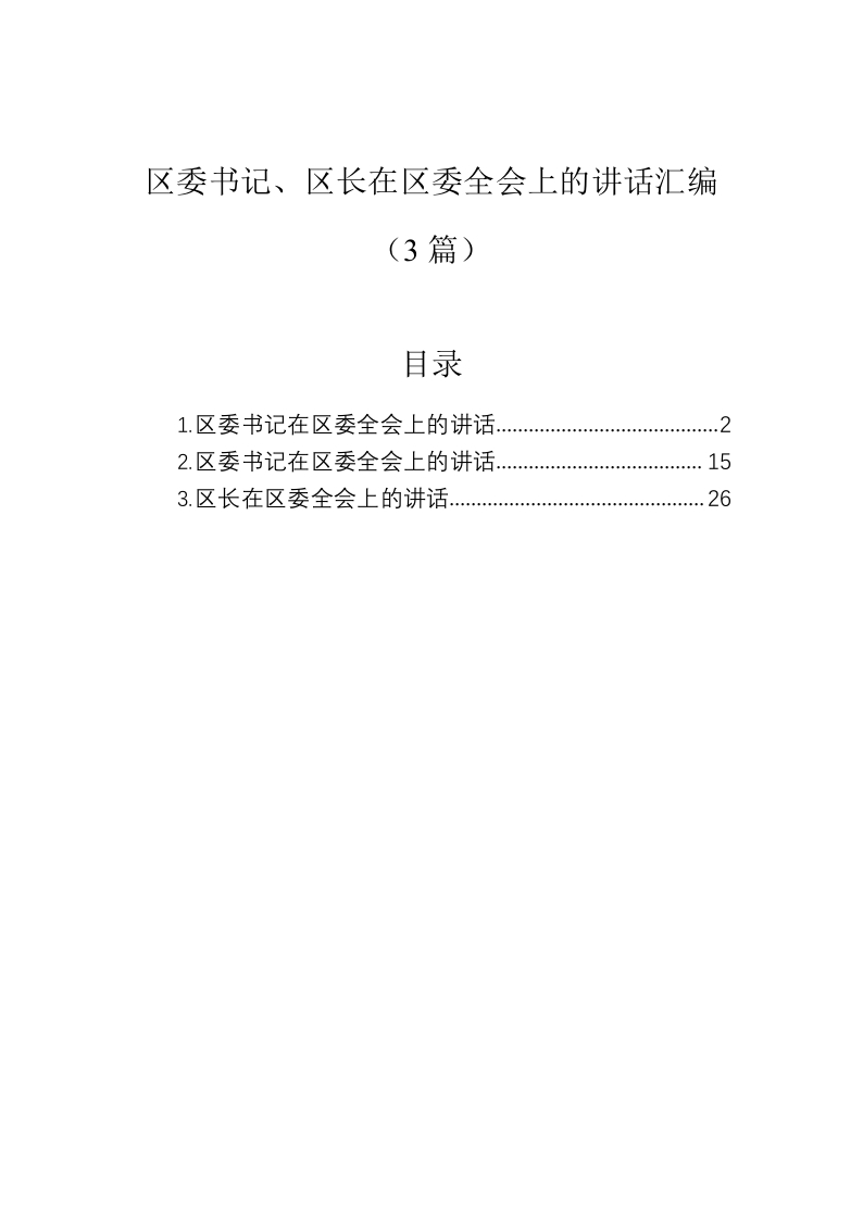 / 区委书记、区长在区委全会上的讲话汇编(3篇)