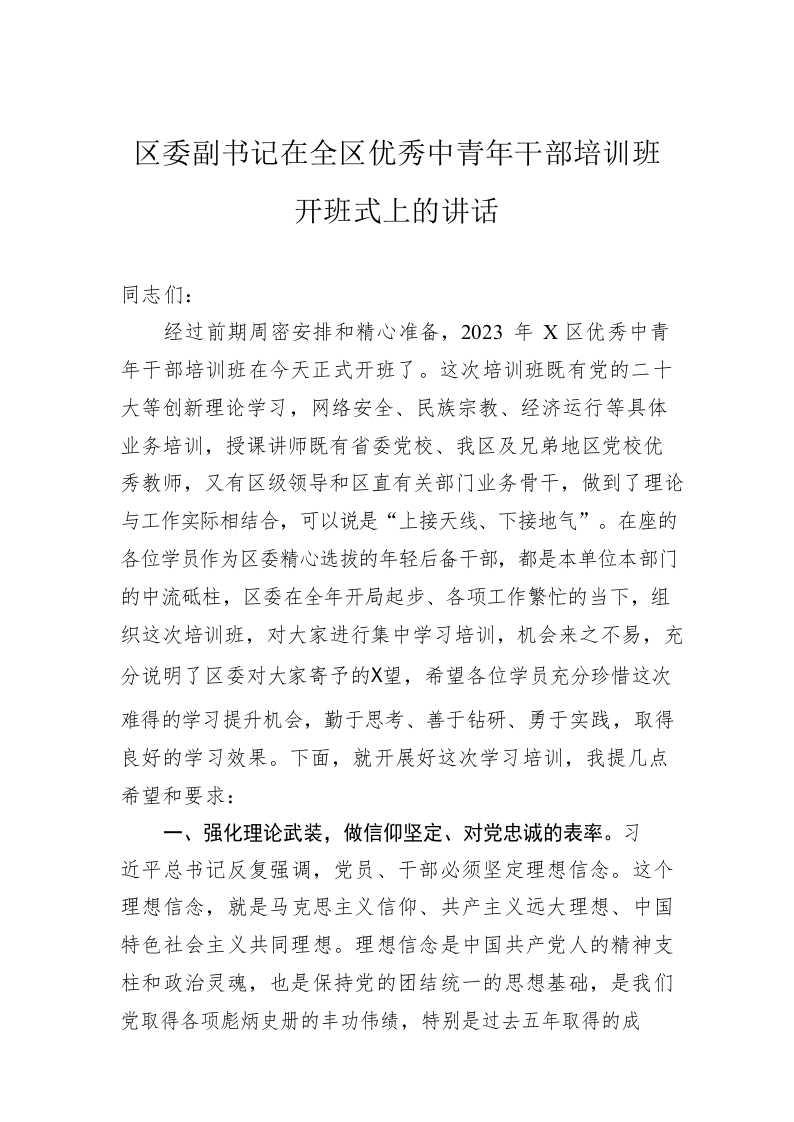 / 区委副书记在2023年全区优秀中青年干部培训班开班式上的讲话