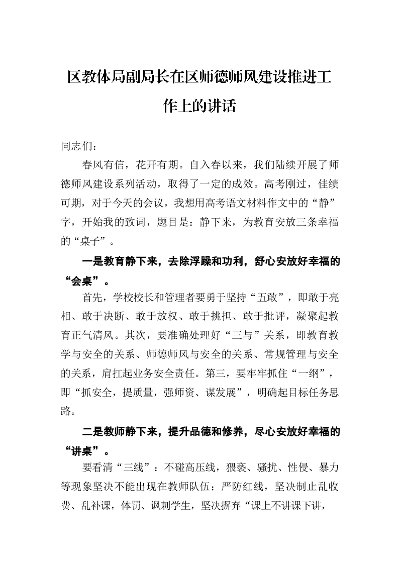 / 区教体局副局长在区师德师风建设推进工作上的讲话