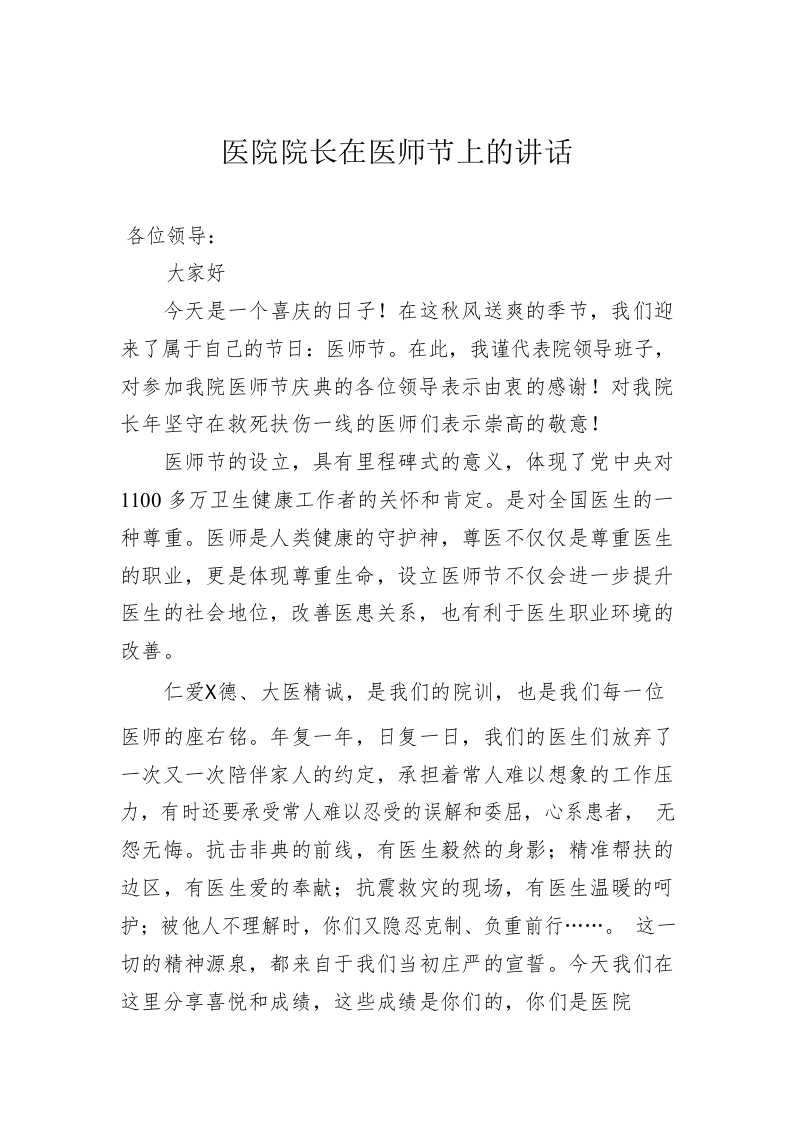 / 医院院长在医师节上的讲话