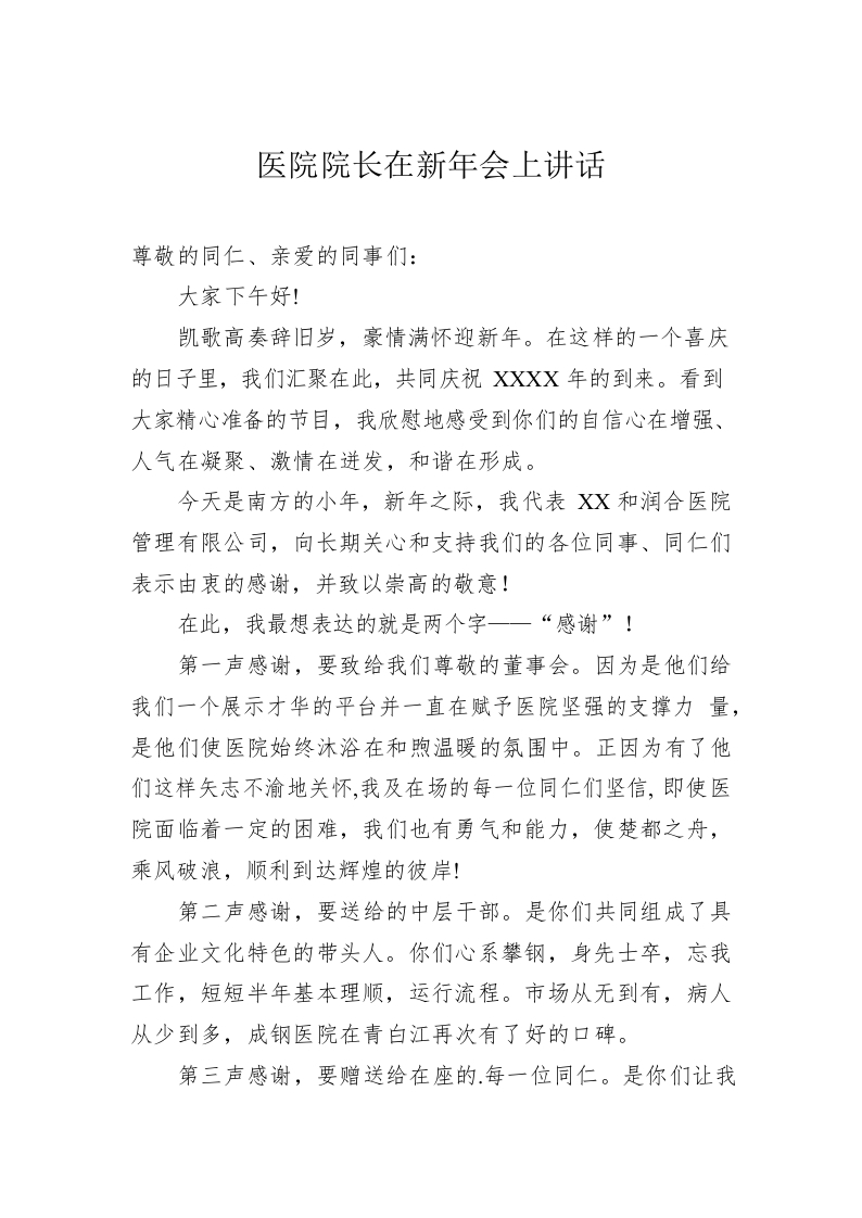 / 医院院长在新年会上讲话