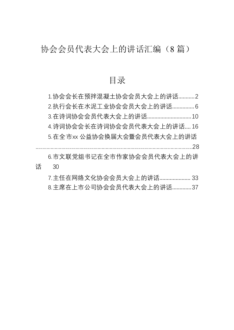 / 协会会员代表大会上的讲话汇编(8篇)