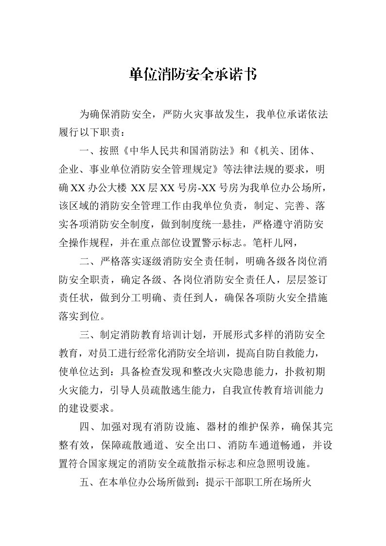 / 单位消防安全承诺书