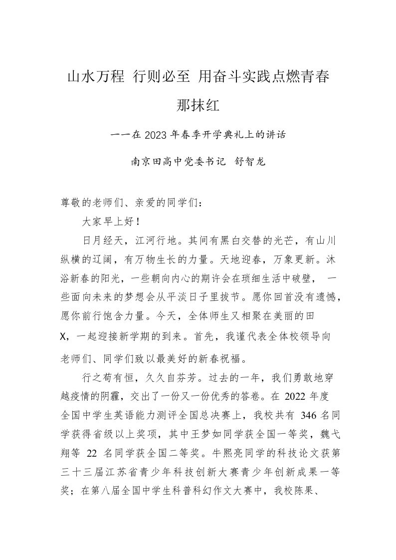 / 南京田高中党委书记舒智龙:在2023年春季开学典礼上的讲话
