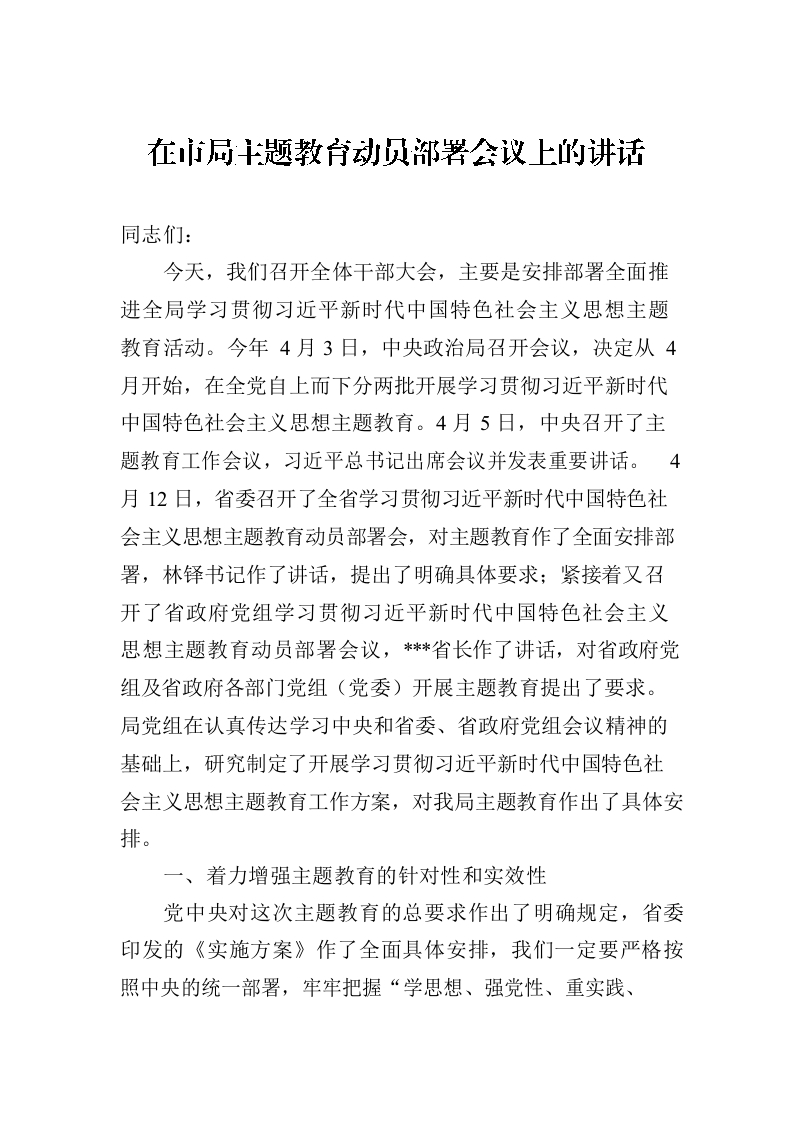 / 在市局主题教育动员部署会议上的讲话