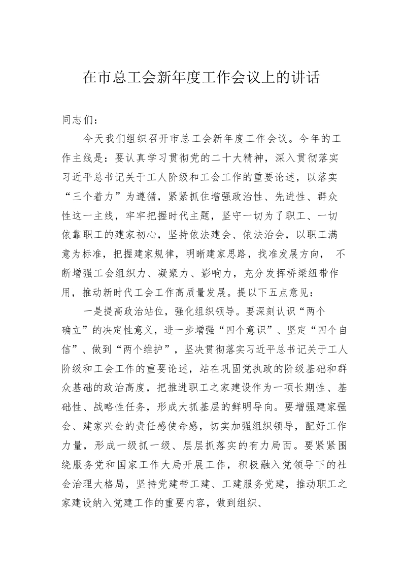 / 在市总工会新年度工作会议上的讲话