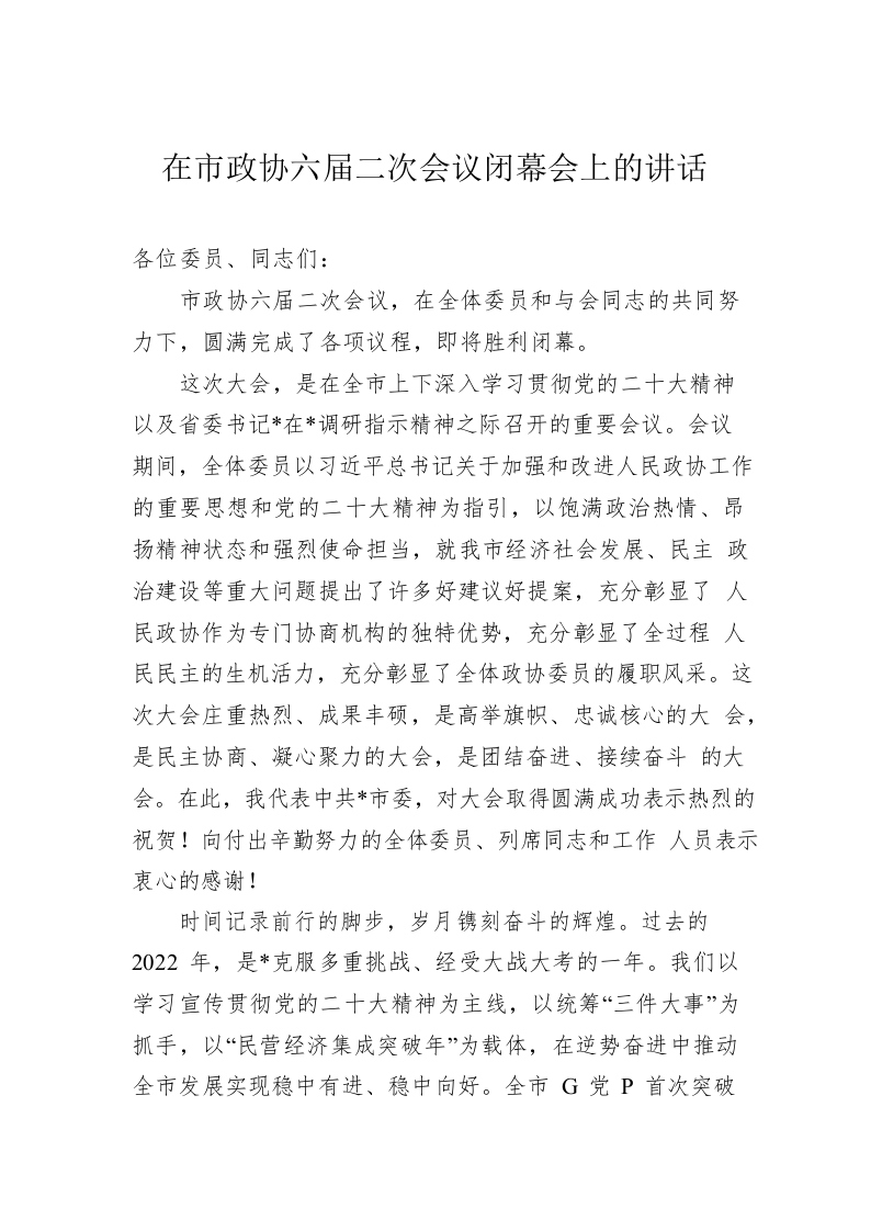 在市政协六届二次会议开幕会上的讲话(20230104)
