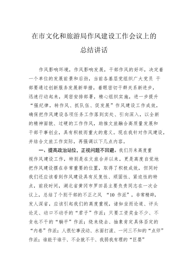 / 在市文化和旅游局作风建设工作会议上的总结讲话