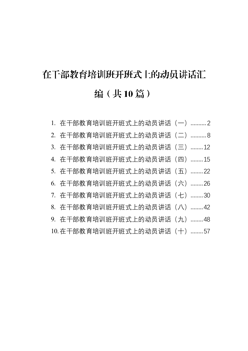 / 在干部教育培训班开班式上的动员讲话汇编(共10篇)