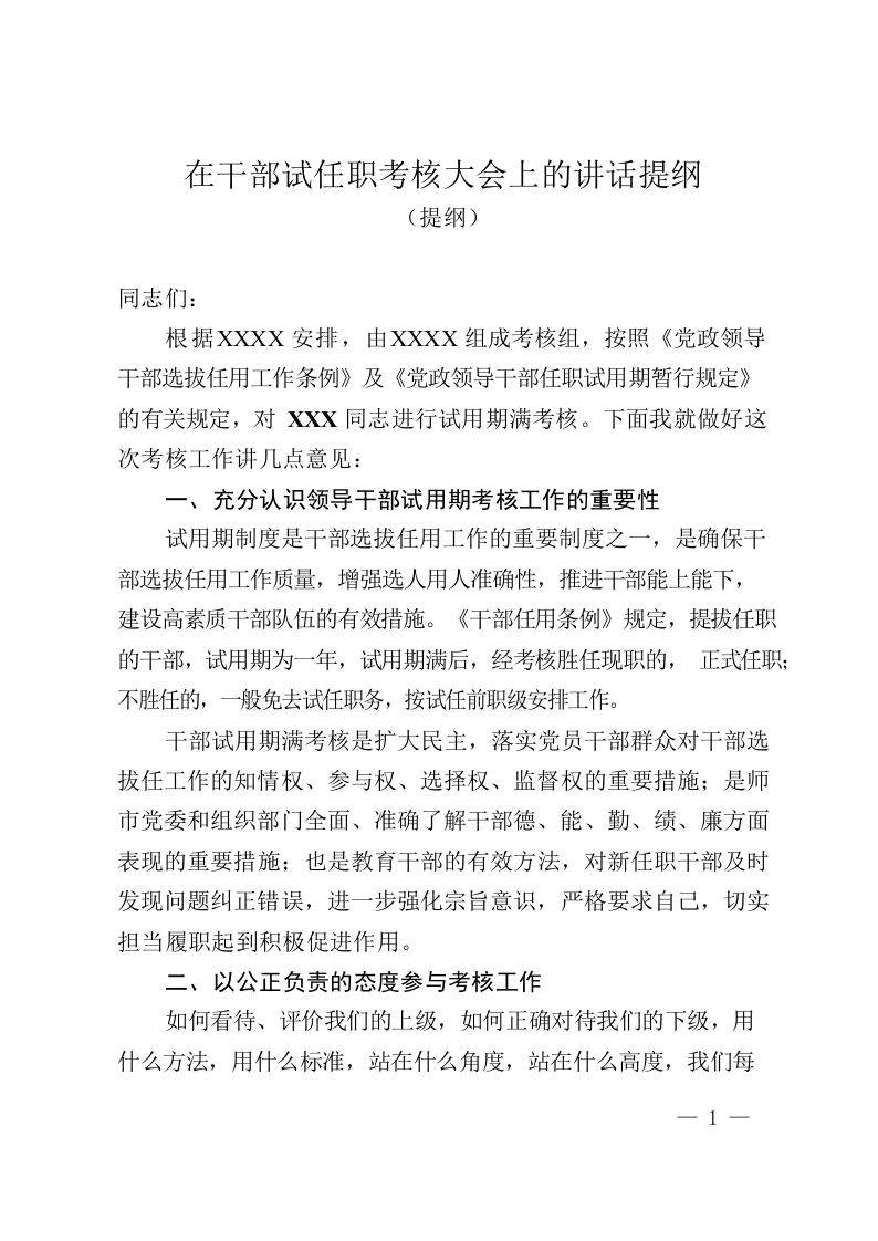 / 在干部试任职考核大会上的讲话