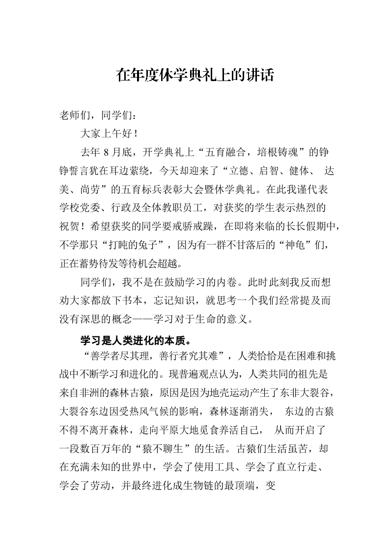 在年度休学典礼上的讲话