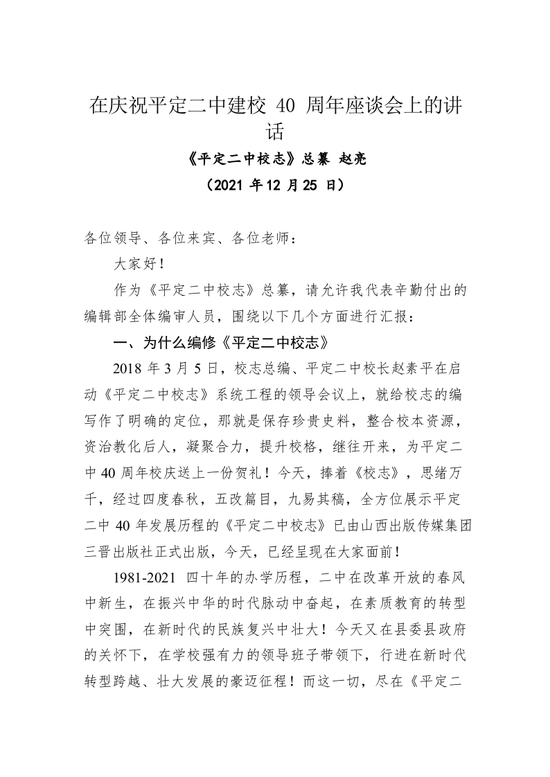 / 在庆祝平定二中建校40周年座谈会上的讲话(20211225)