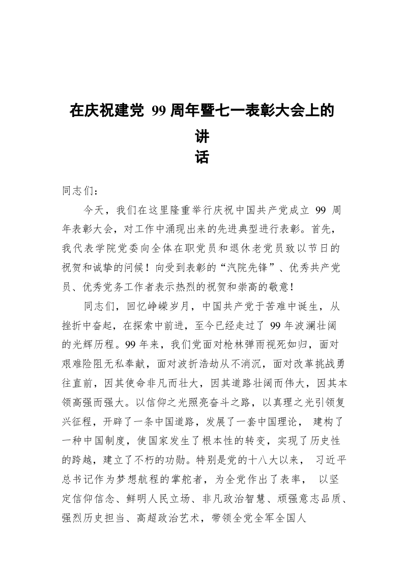 / 在庆祝建党99周年暨七一表彰大会上的讲话