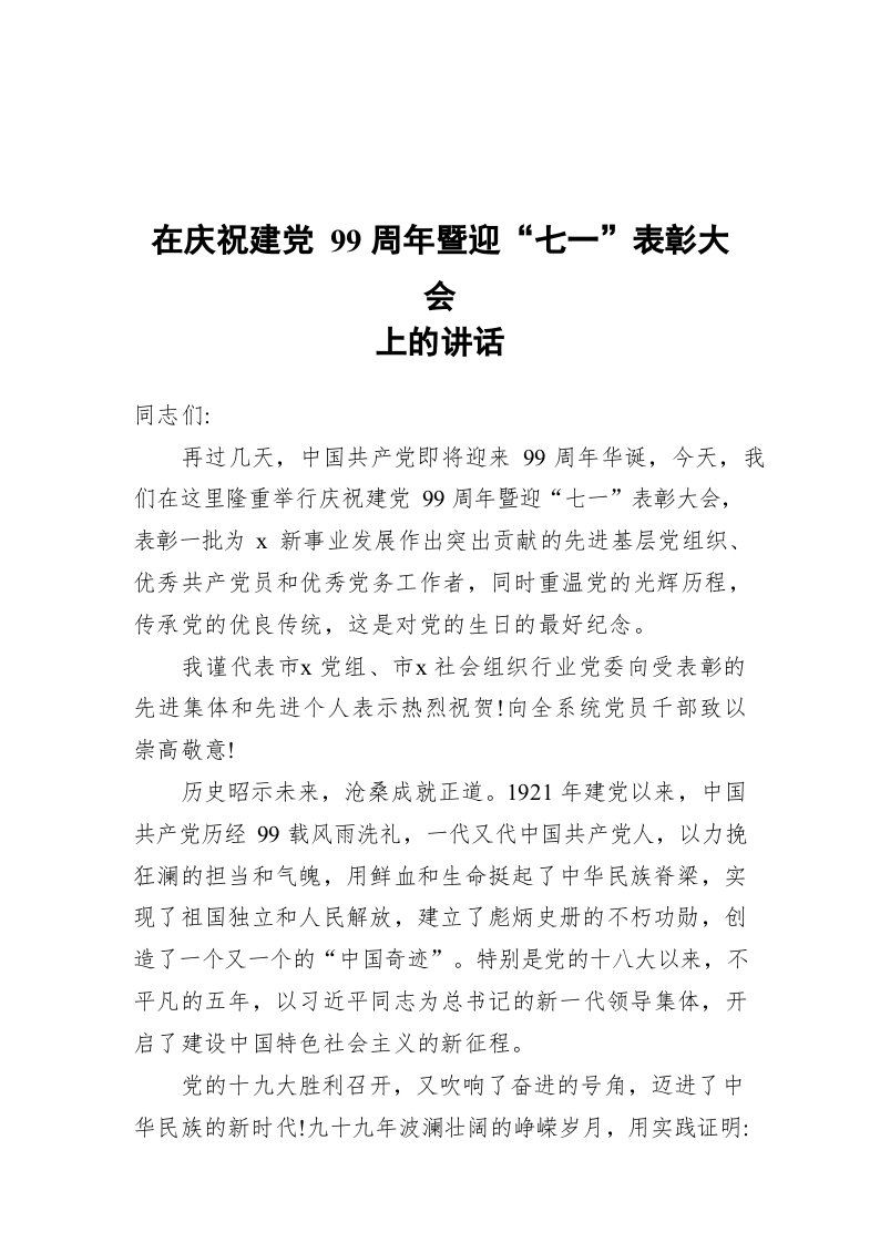 / 在庆祝建党99周年暨迎“七一”表彰大会上的讲话