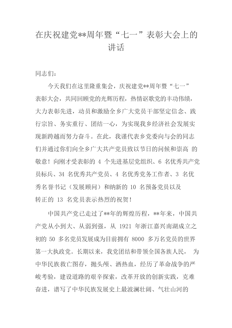 / 在庆祝建党周年暨“七一”表彰大会上的讲话