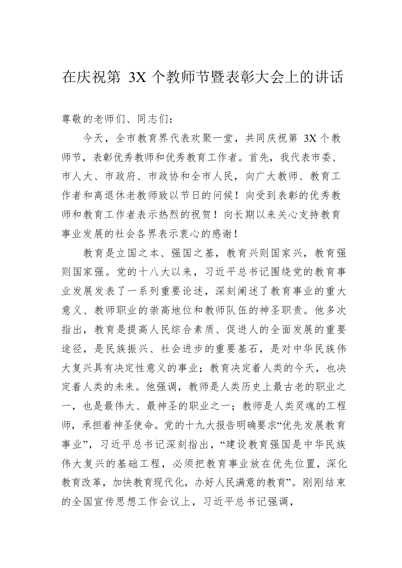/ 在庆祝第3X个教师节暨表彰大会上的讲话