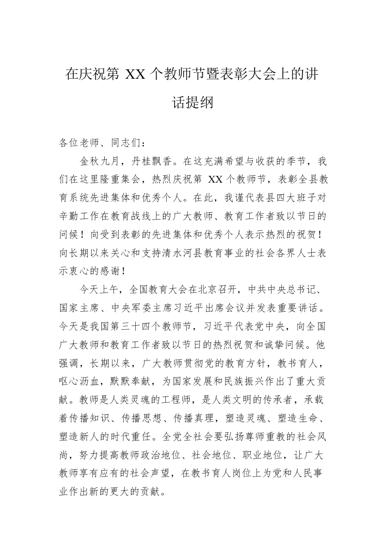 / 在庆祝第XX个教师节暨表彰大会上的讲话提纲