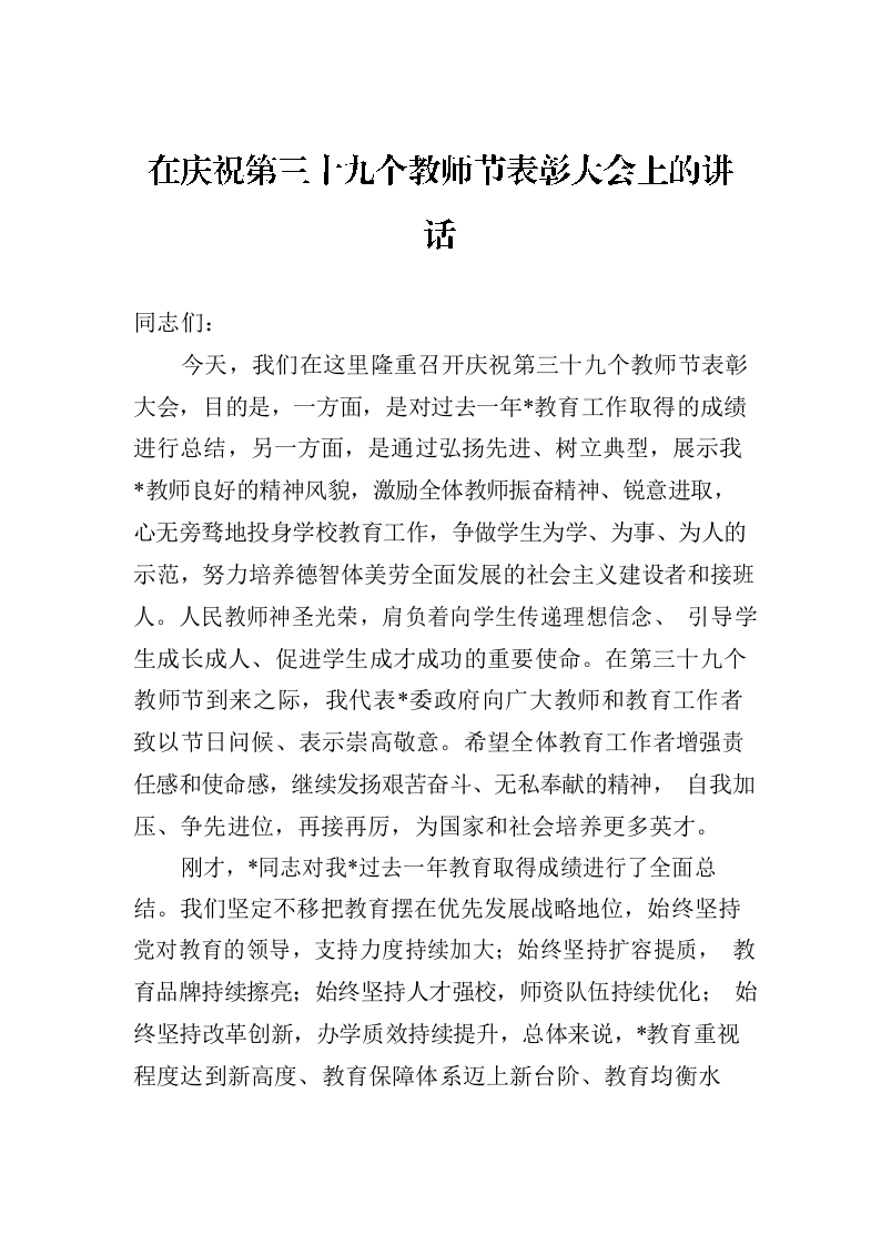 / 在庆祝第三十九个教师节表彰大会上的讲话