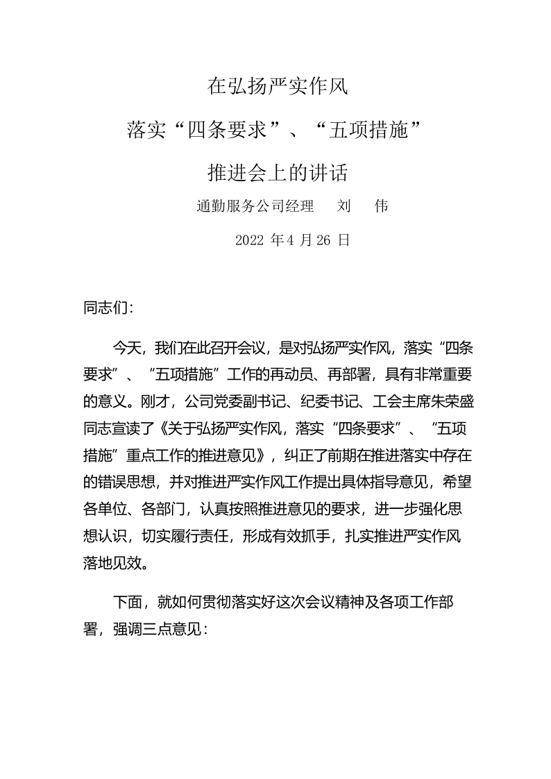/ 在弘扬严实作风落实“四条要求”、“五项措施”推进会上的讲话