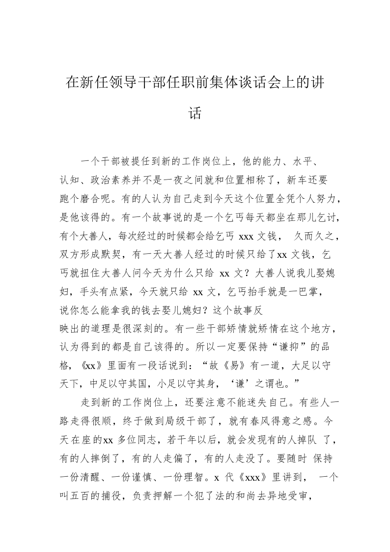 / 在新任领导干部任职前集体谈话会上的讲话0