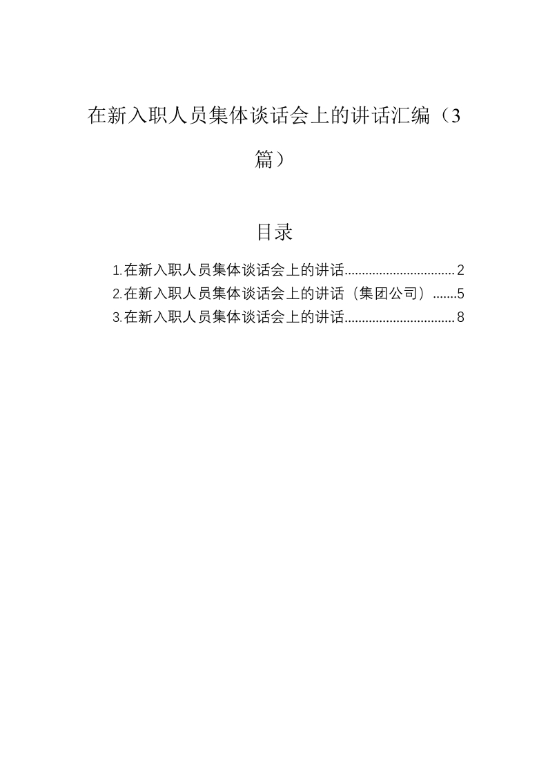 / 在新入职人员集体谈话会上的讲话汇编(3篇)