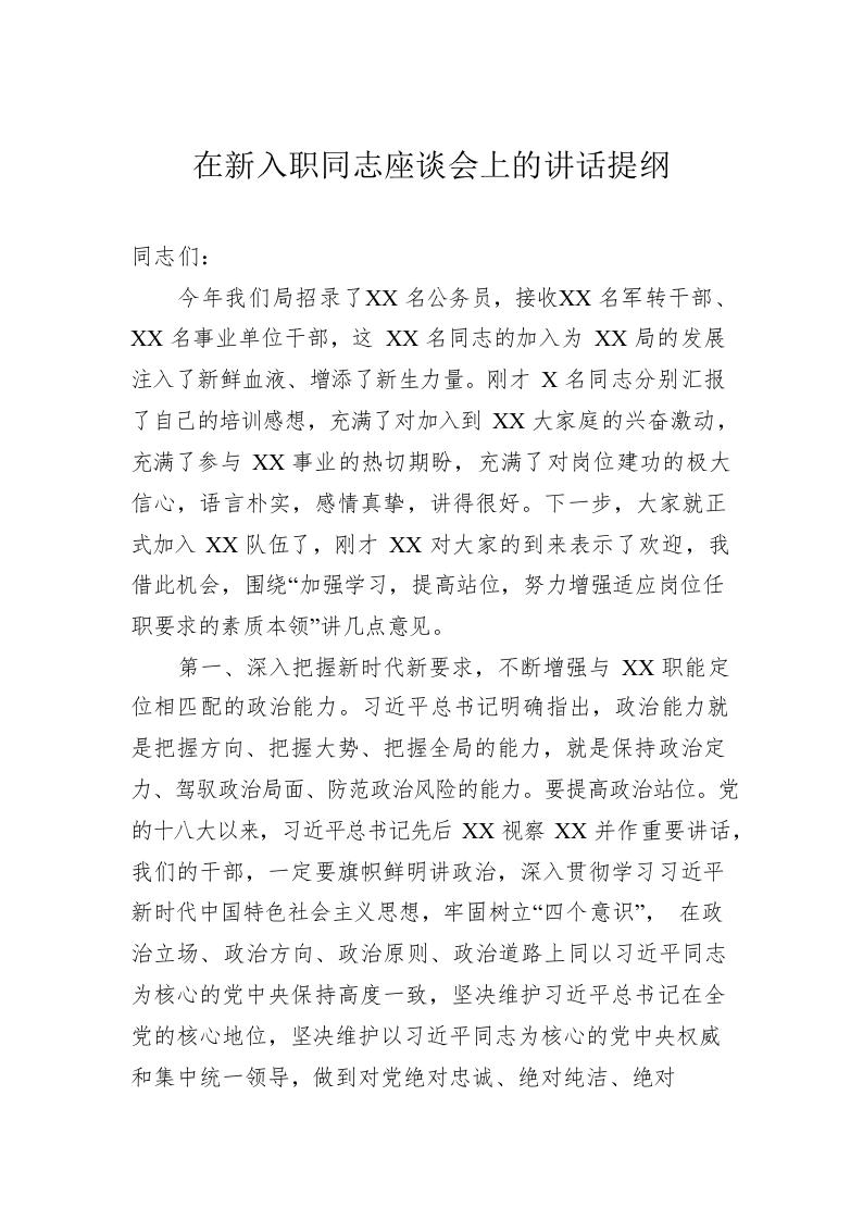 在新入职人员集体谈话会上的讲话汇编(3篇)