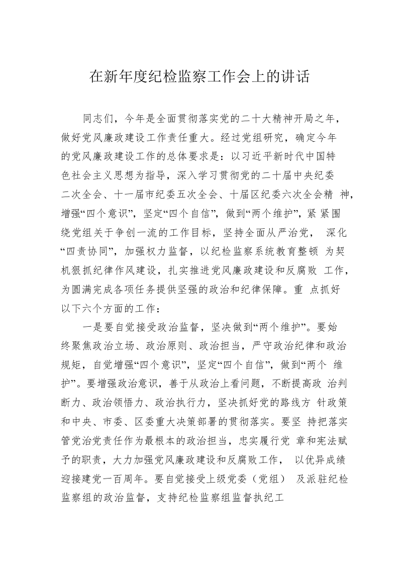 / 在新年度纪检监察工作会上的讲话