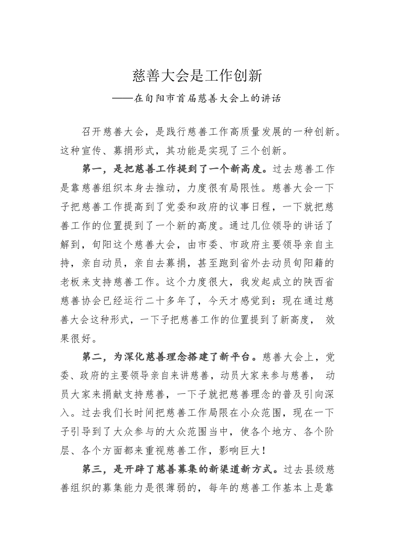 / 在旬阳市首届慈善大会上的讲话(20220720)