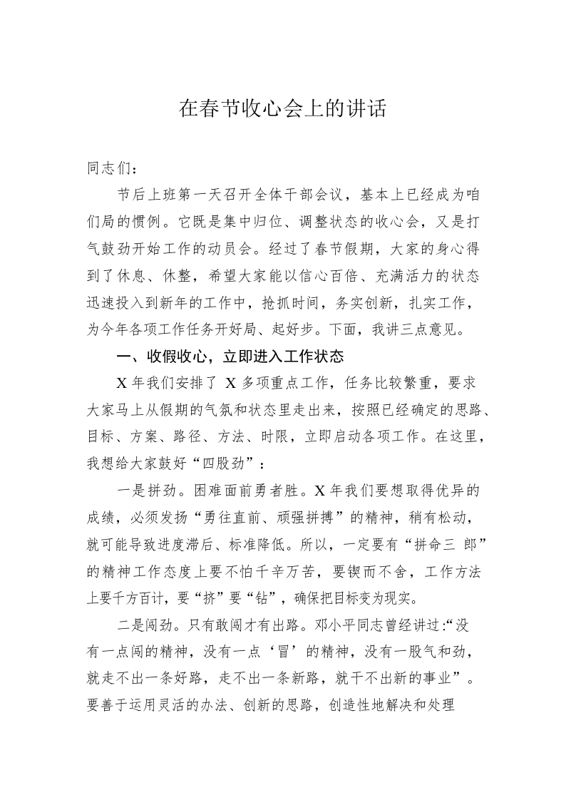 / 在春节收心会上的讲话0