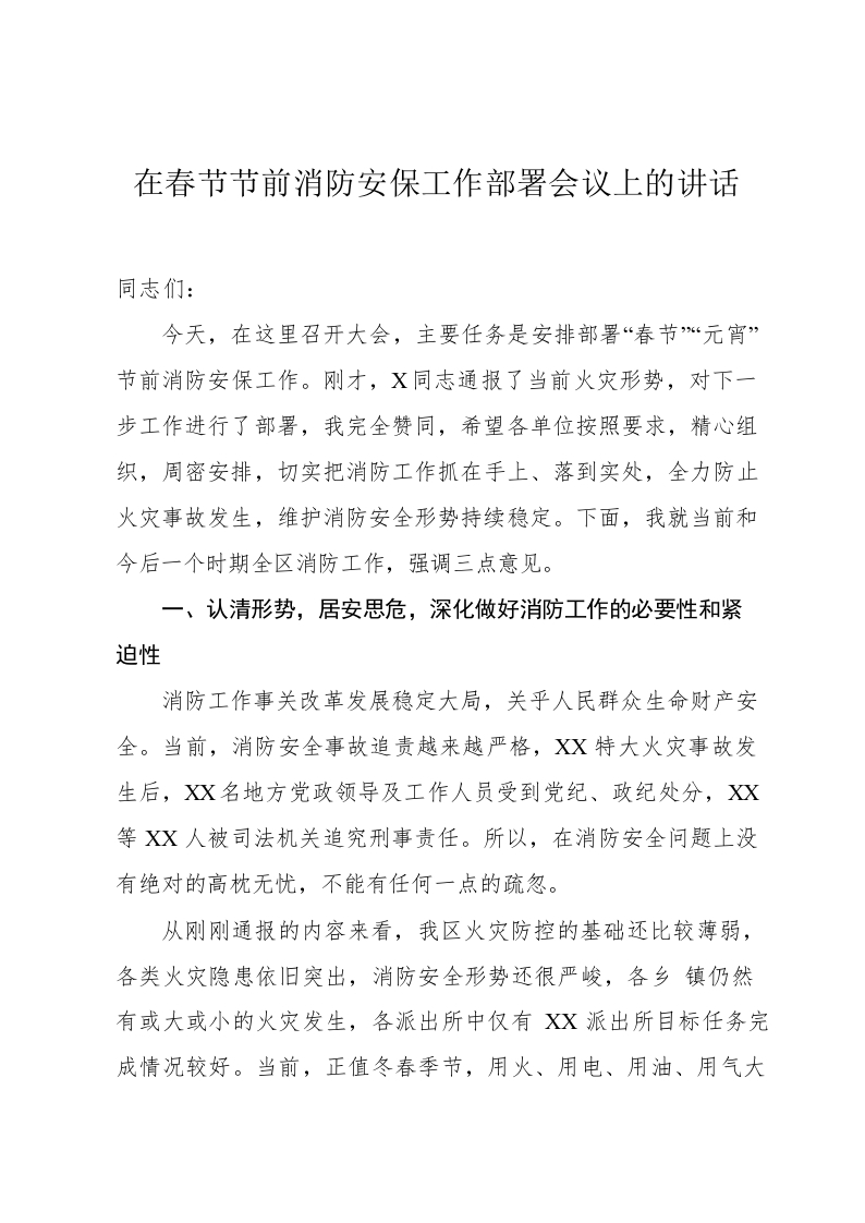 / 在春节节前消防安保工作部署会议上的讲话