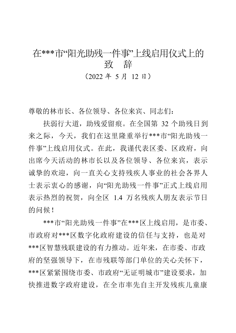 在智慧残联上线启用仪式上的讲话提纲5.10